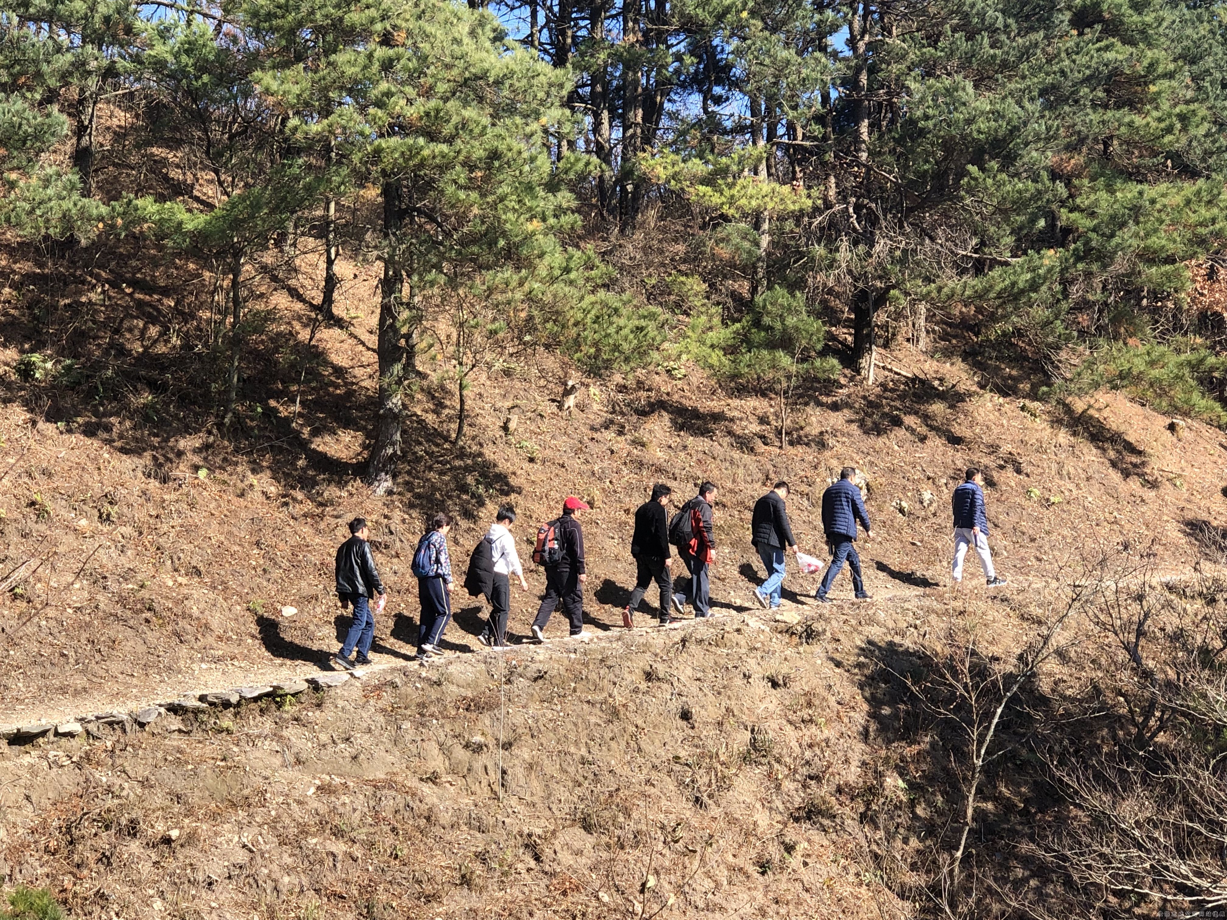 上山的路滿是汗水,陡坡、碎石,直線上升的海拔,穿行其間只聽到高頻率的喘息和腳踩落葉的沙沙聲…… 最最艱難的4KM在隊友間的鼓勵聲中前行。