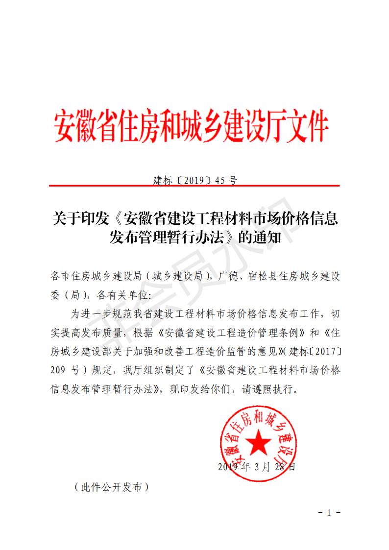 第一條 為進一步規范我省建設工程材料市場價格信息發布工作,切實提高發布質量,根據《安徽省建設工程造價管理條例》和《住房城鄉建設部關于加強和改善工程造價監管的意見》等規定,結合我省實際情況,制定本辦法。