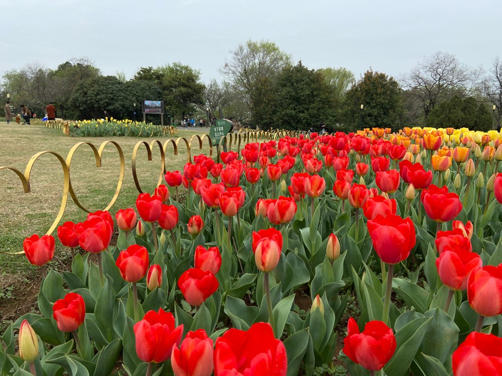 效果:用大面積顏色來營造花海的氛圍感,利用不用花色花形狀,組合出成片的花帶,搭配出層次感。
