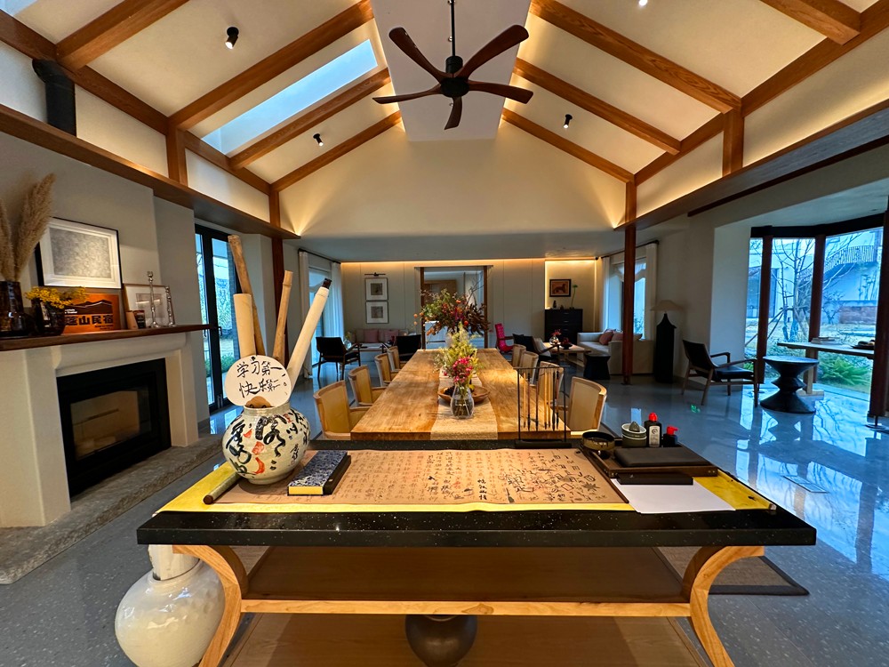 民宿擁有濃厚的文化底蘊,周邊青山環繞,兼具市井煙火氣息和藝術氛圍,傳承中國經典美學,與周圍的自然環境融為一體,適合家庭游、親子游、情侶散心、公司團建、生日派對等。